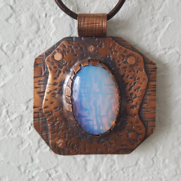 I’m a minimalist when it comes to wire-wrapping. For me, it’s all about the stone. For a bit of whimsy, I’ve added accents of faceted micro turquoise in the bird nest wrap. They remind me of little spinning blue planets. The touch of blue from the turquoise micro beads both complement and bring out the blues hiding in this lovely stone. Is it planet Earth? Is it the universe? I’ll leave that up to the new owner to decide.