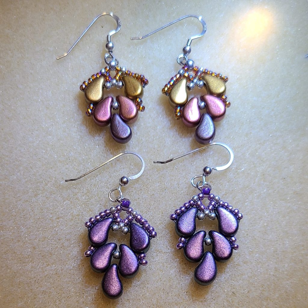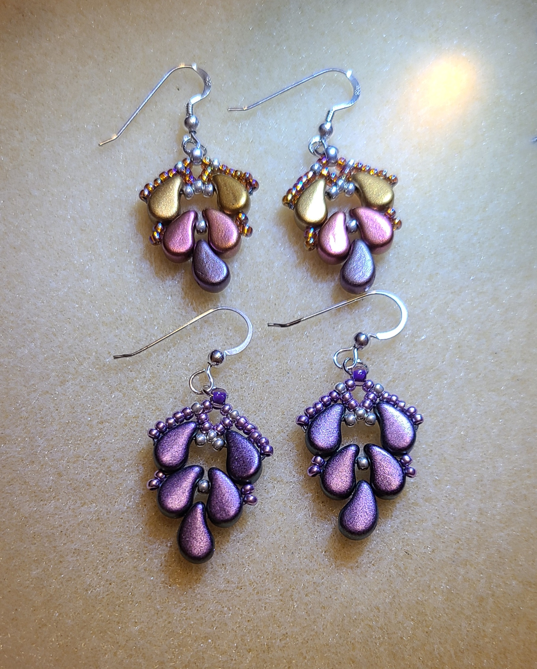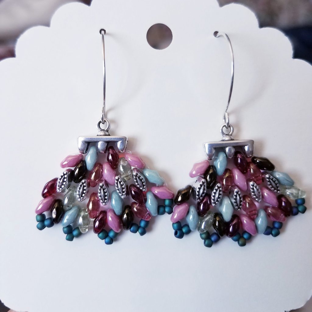 Pretty beaded earringsHand forged (by my cousin the blacksmith) penny and dime cowboy hat earrings. These are dated in pairs.Beautiful beaded earrings with the imagery of the ruins of Tulum.Pretty beaded leaf earrings.Same style, four different ways to have fun.